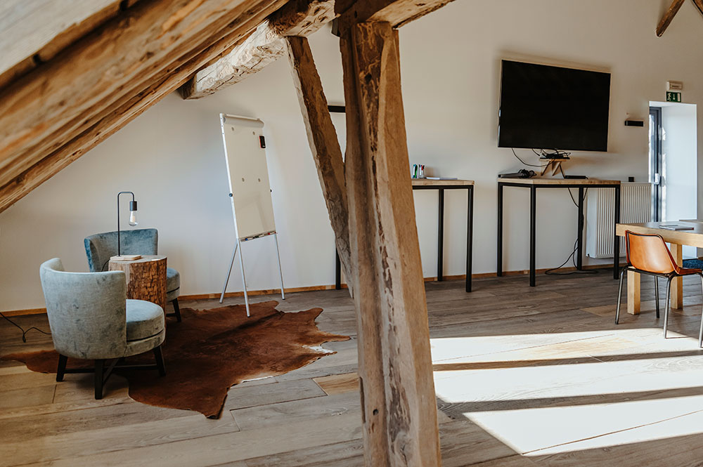 Surface 120 m2 60 pers. assises 120 pers. walking dinner Micro sans fil Ecran géant Wifi Flipchart Location jour : 300€ /j